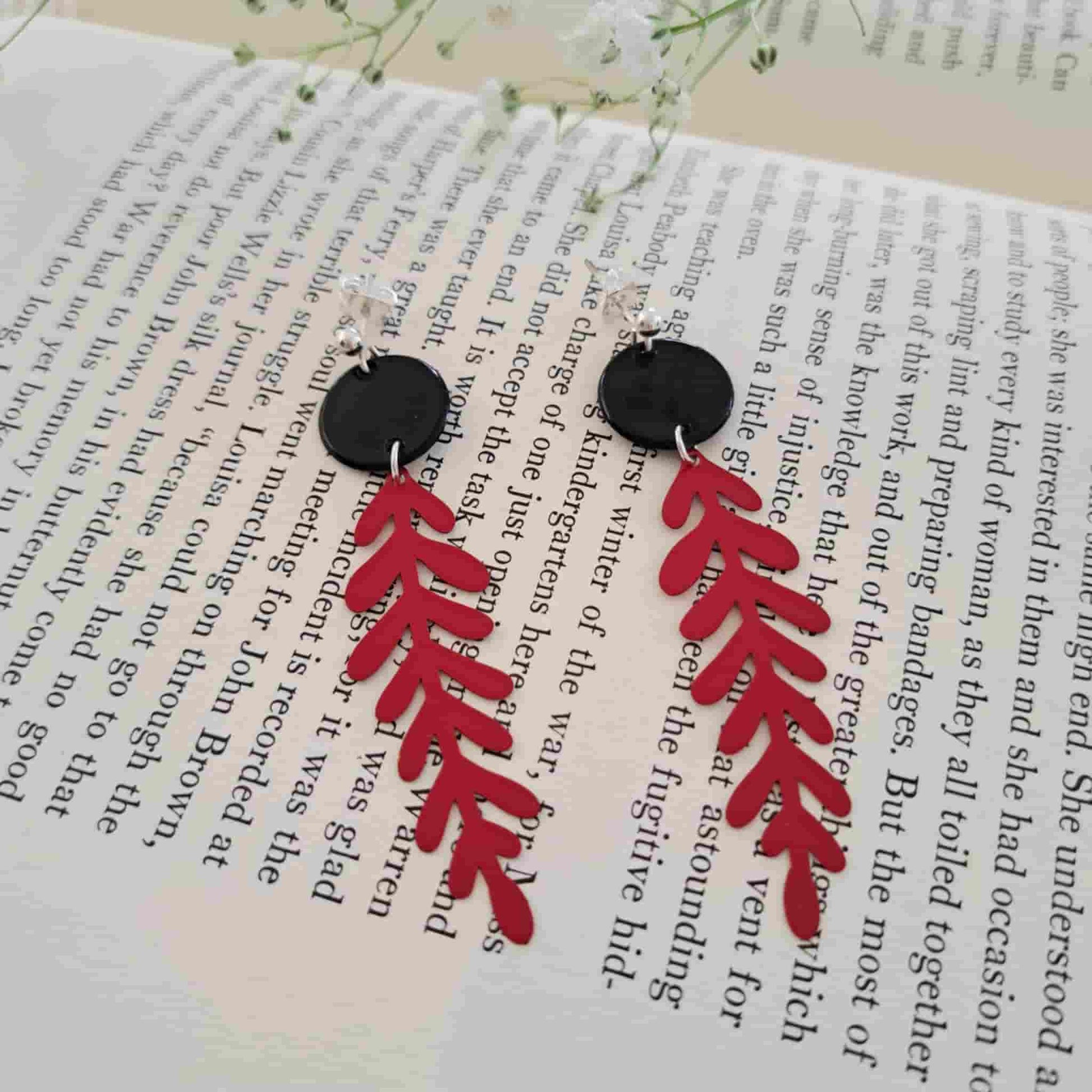 Playful and quirky, these colourful earrings are made from tiddlywinks and statement vine shaped charms. Lovingly handmade in Hertfordshire from upcycled materials, each pair transforms nostalgic tiddlywinks into joyful statement pieces that are sure to make you smile.